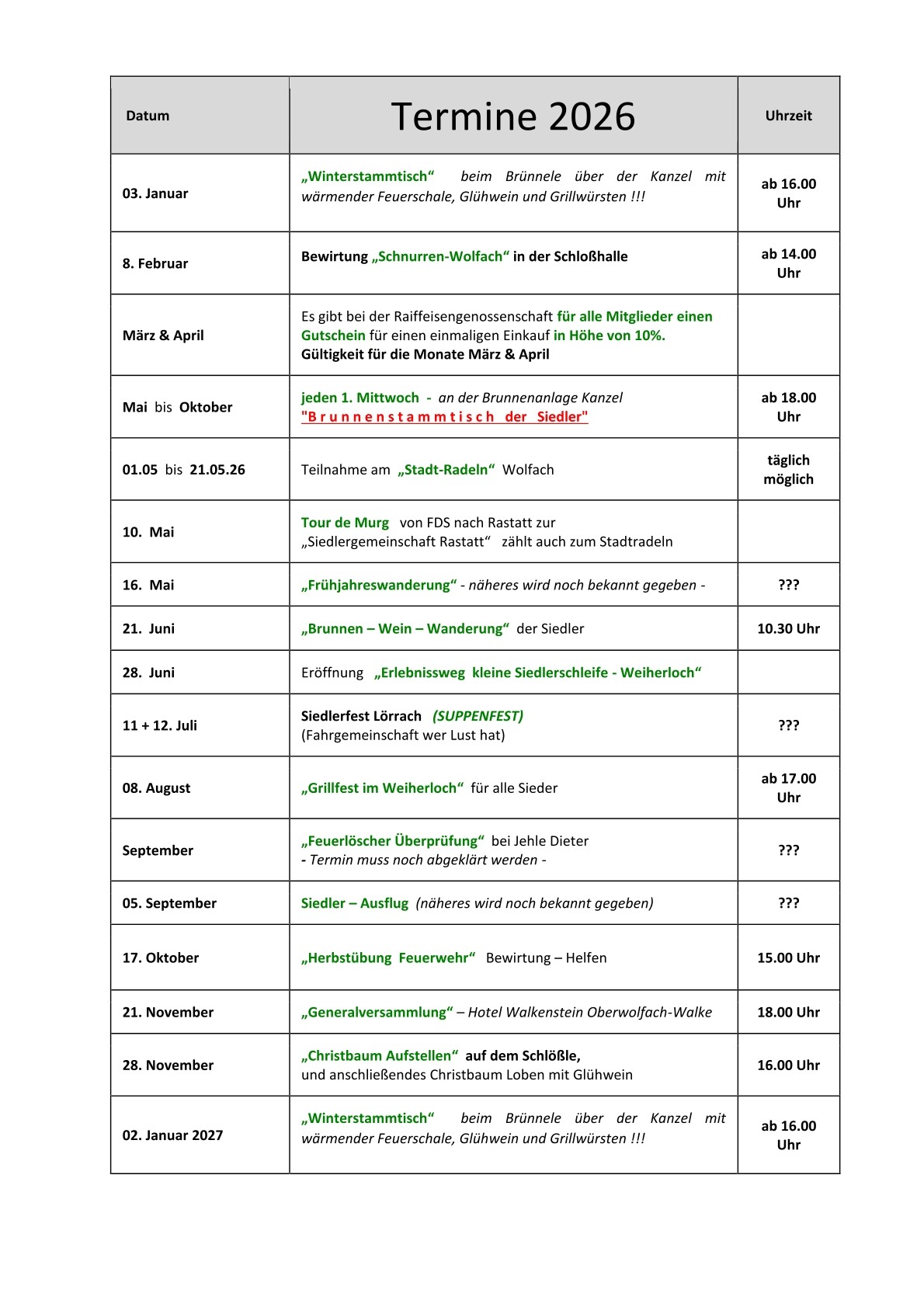 Termine 2026
